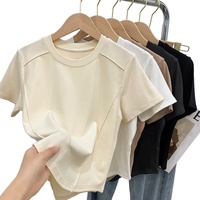 Camiseta de verano de manga corta ajustada para mujer Diseño de hombro de hueso de pescado de moda Reducción DE EDAD Transpirable Sólido Casual de punto