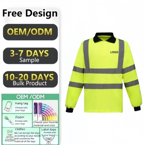 Fuyi Ropa de trabajo para hombre Camisa DE SEGURIDAD reflectante Polo Camiseta de poliéster de manga larga con logotipo personalizable Color amarillo